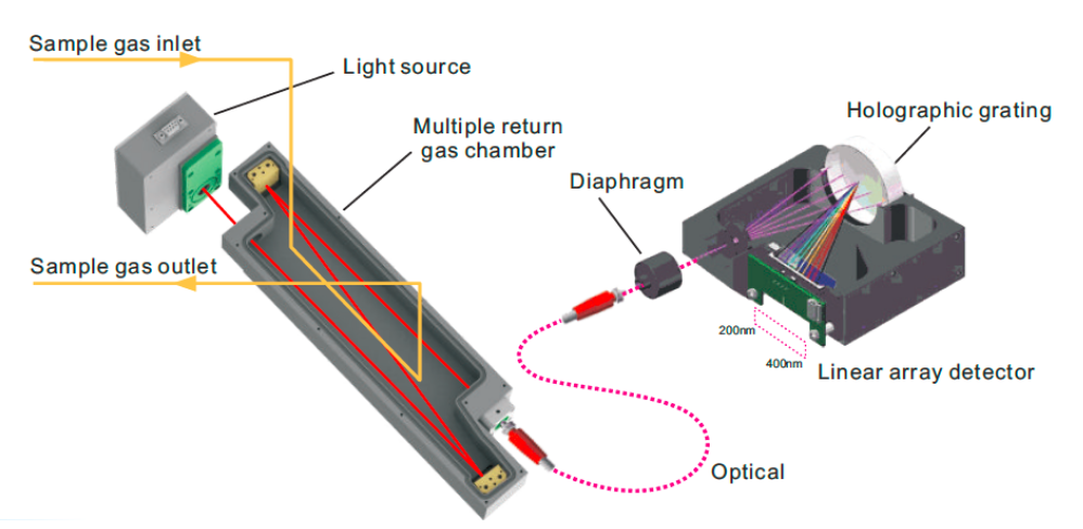 Nhiều buồng khí trở lại + công nghệ DOAS + PLS, Độ dịch chuyển nhỏ Thiết kế mô-đun Không có bộ phận chuyển động quang học và không có ảnh hưởng rung Công nghệ điều chỉnh tự động Spectrum, Nguồn ánh sáng thông qua nguồn xung, tuổi thọ là 10 năm
